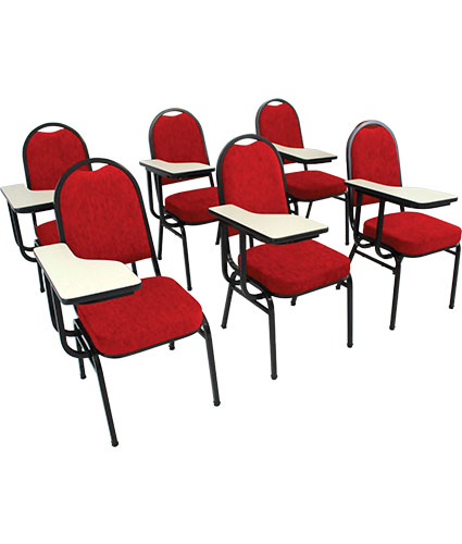 Cadeira empilhável com até 8 cadeiras sem a prancheta.