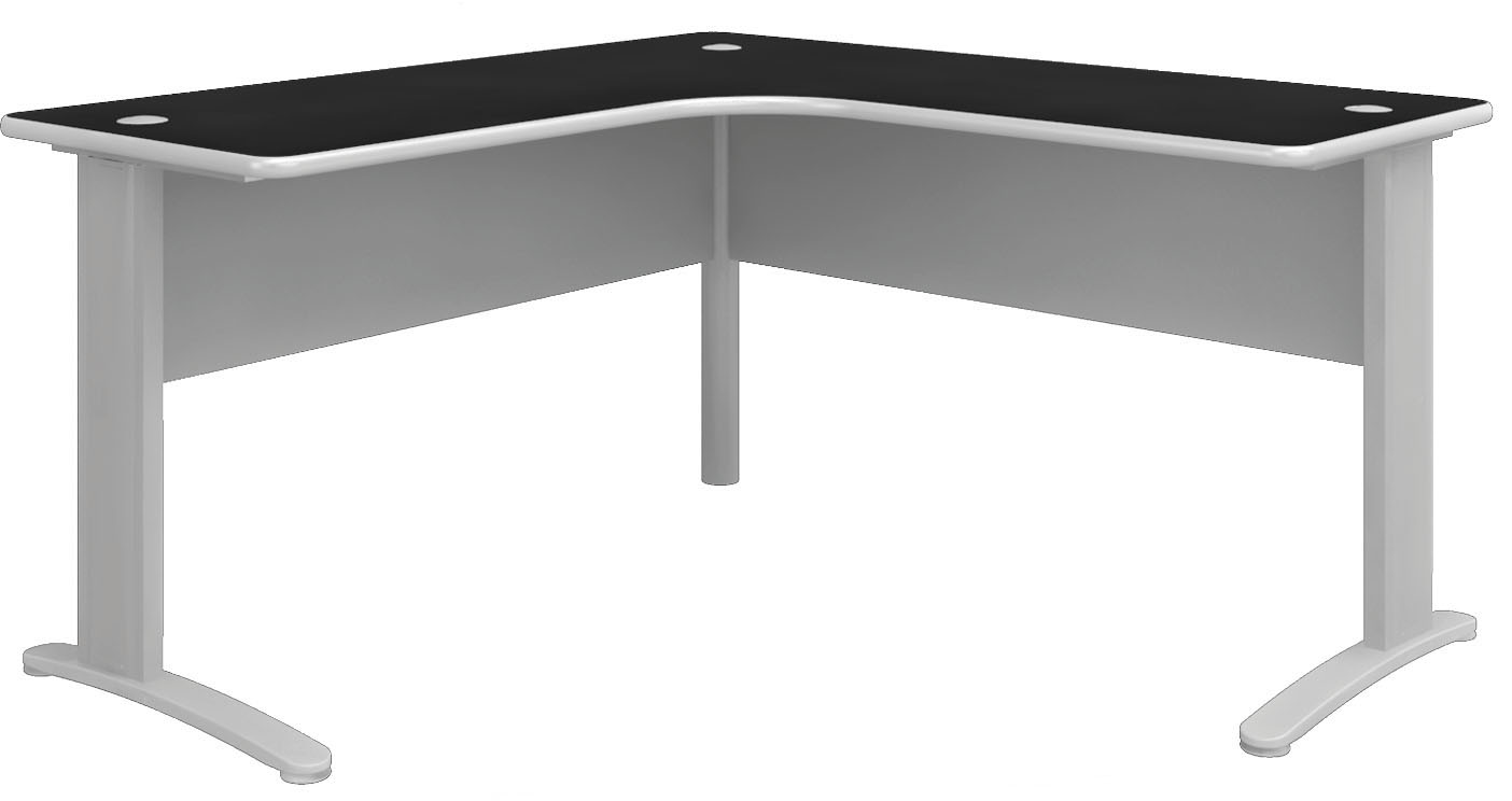 Estação de Trabalho tampo confeccionado em MDP na espessura de 18 ou 25 mm acabamento com perfil 180º, estrutura metálica com pintura epoxi pó e calha para passagem da fiação.