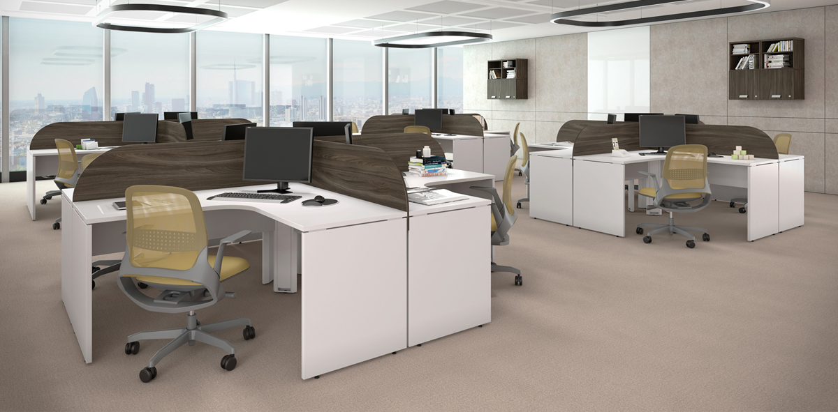 MESA DELTA EM L COM PES PAINEL, TAMPO CONFECCIONADO EM BP 25MM COM FITA DE BORDA EM 2MM, PÉS CONFECCIONADOS EM BP 25MM COM FITA DE BORDA EM 1MM; COM NIVELADORES DE ALTURA, DIVERSOS TAMANHOS.