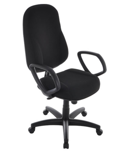 Poltrona presidente, giratória, a gás, com relax, assento e encosto com espuma injetada, estrutura com rodízios esféricos duplos, estrela com carenagem, braços em poliuretano skin com alma de aço.